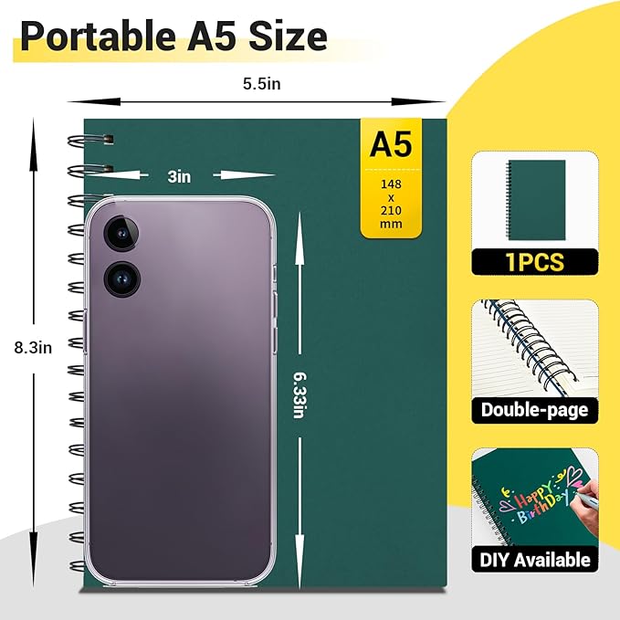 EUSOAR Notebook Spiral, 1 Pack A5 5.5"x8.3" Hardcover College Ruled Lined Journal, 240 Pages(120 Sheets) Writing Pads Professional Notebook for DIY Note Taking School Business Work Office Diary