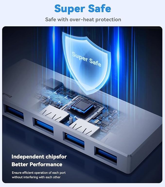 - High-Speed Data Hub: The 4-port USB distributor utilizes high-efficiency USB 3.0 to provide stable data transfers of up to 5Gbps (USB 3.0) and supports transfer speeds of 480Mbps (USB 2.0) and 12Mbps (USB 1.1).***This device is only used for data transmission and cannot be used to charge the device***