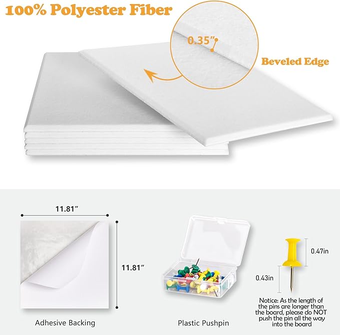 - ADDITIONAL FEATURE - The polyester fiber panels with porous structure help absorb air vibrations in sound waves, reduce sound reflection and echo. Install as a whole wall for higher noise reduction
