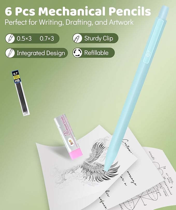 - 6 Pieces of Mechanical Pencils: This set includes 3 pencils with 0.5 mm leads, 3 with 0.7 mm leads. Its comfortable triangle grip fits your hand properly and can help you adopt the ideal holding position to reduce writing pressure