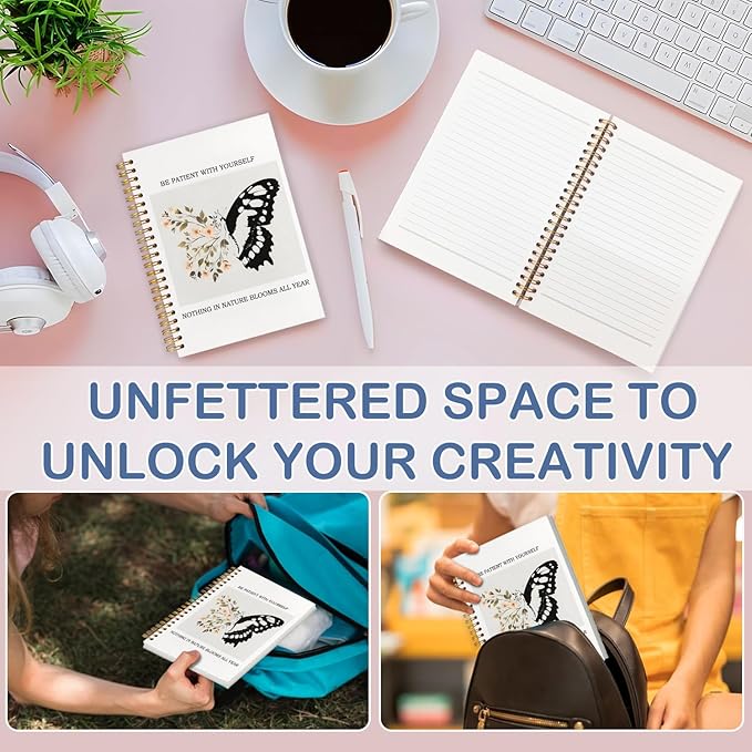 SNNDER Inspirational Butterfly Notebook Journal, Be Patient with Yourself Therapy Mental Health Journal for Women, Encouragement Gifts for Women, Hardcover Spiral Notebooks 5.5x8.3 Inch