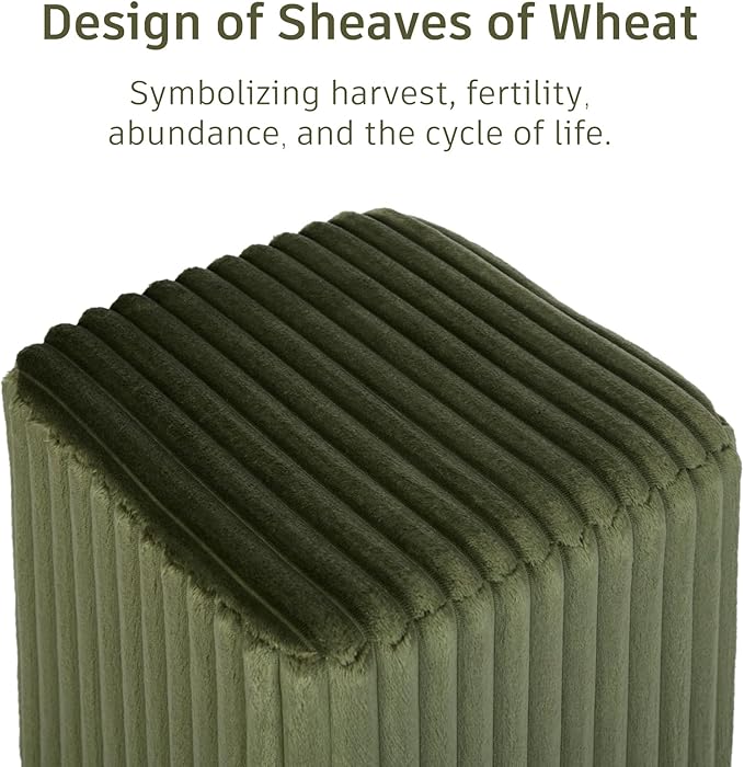 Modern Square Ottoman, Vertical Channel Tufted Foot Stool Ottoman, Velvet Upholstered Vanity Stool for Makeup, Bedroom, Living Room, Dark Green