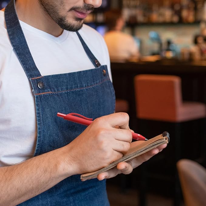 - 【COMFORTABLE TOUCH】The red matte barrel of this click pen provides a soft and comfortable touch and a comfortable writing experience. Ultra-lightweight and compact, easily fits in backpacks, pockets or purses.
