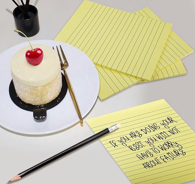 - Portable Large Size: This bulk sticky note set includes 6 pack of lined sticky notes, each containing 50 sheets for 300 total pages. The large 6x8 sticky notes lined format offers ample writing space while maintaining portability. this yellow sticky notes bulk package ensures you'll never run out when managing tasks, meeting notes, or study reminders.