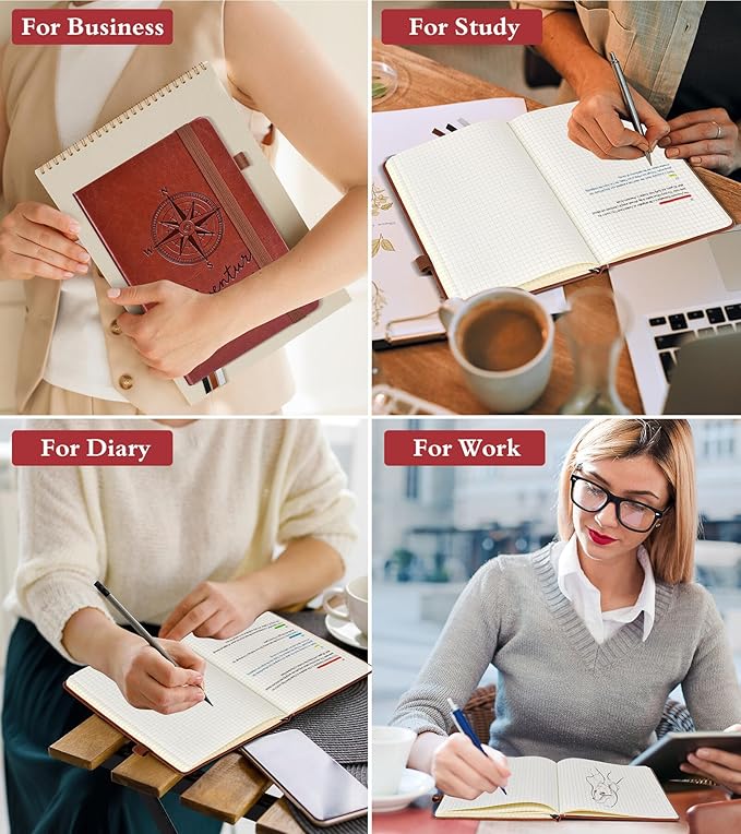 - 【180° Lay-Flat Binding for Effortless Writing】:The journal’s lay-flat design lets pages open completely, making writing, drawing, or note-taking easy for both left- and right-handed users. No more curled corners—just smooth, seamless access to every grid for efficient planning, studying, or journaling.