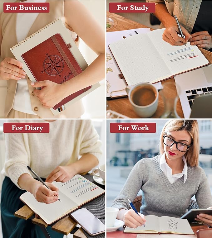- 【180° Lay-Flat Writing Comfort】:The journal’s lay-flat binding allows full-page access for easy writing, planning, or note-taking—no page curling.Perfect for left-handed users, detailed bullet journaling, or seamless project organization.