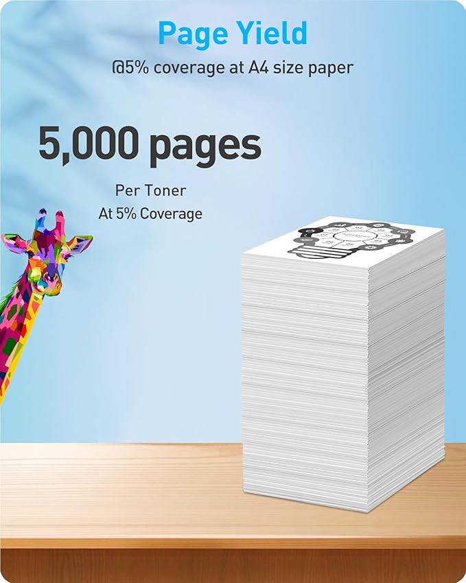 - Page Yield: up to 5,000 pages per black ink @5% coverage at A4 size paper