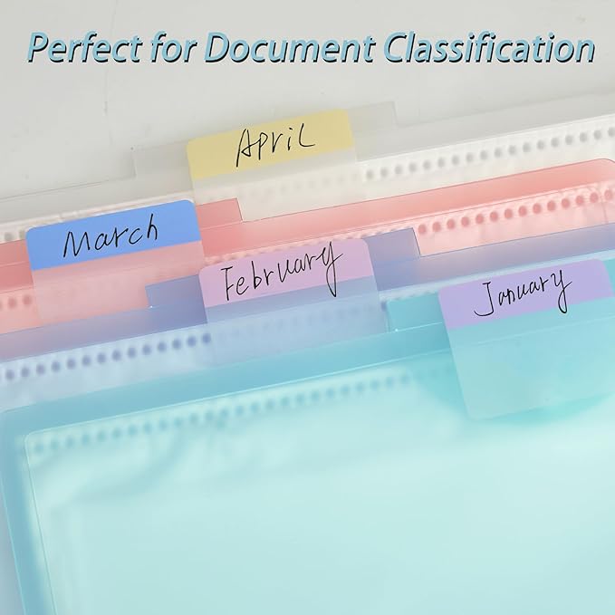 - Safety & Superior Quality: Our reusable binder tabs are made of premium BOPP material, which is waterproof, smooth writing and no odor; Self adhesive part is transparent. Easily organize planners and calendars into sections