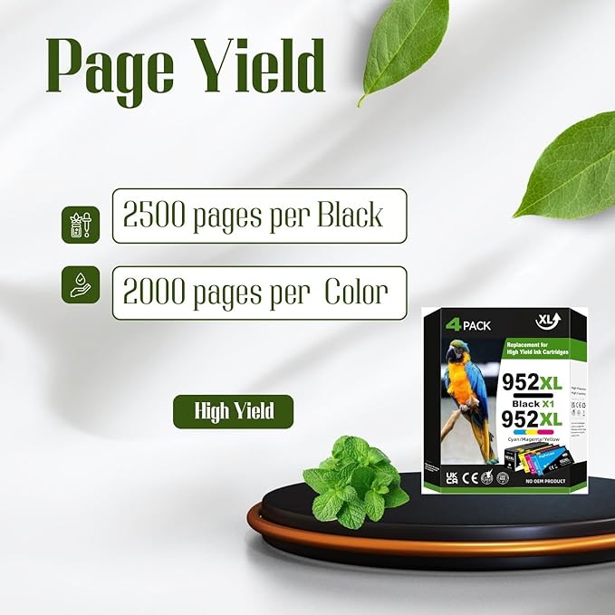 - Page Yield:Up to 2500 pages per XL Black, 2000 pages per XL color cartridges (Cyan, Magenta, Yellow)