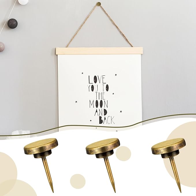 30 Pieces Push Pins, Metal Thumb Tacks for Picture Photo Hanging, Wall Pins for Board Posters Bulletin Maps, Wall Tack for Office Home Decorative(Bronze)