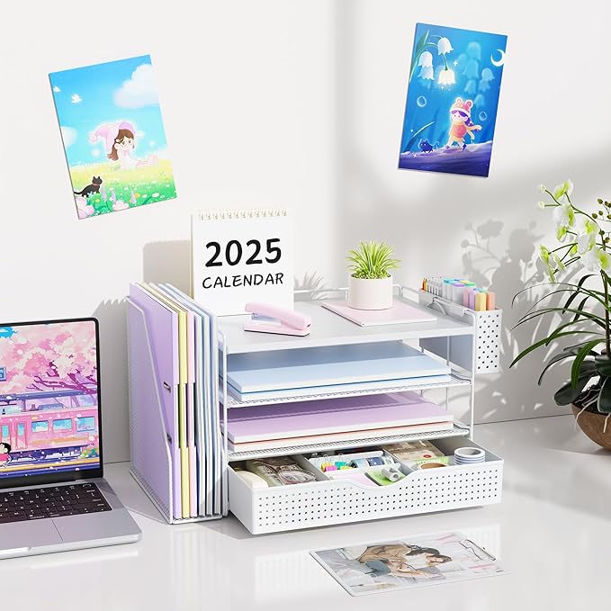 - 【Improve Work Efficiency】: This pen organizer contains 4 trays, 1 magazine rack, 1 pen holder, and 1 sliding drawer, which can help you quickly identify the contents of each compartment, helping to keep papers, notebooks, and office supplies neatly organized and easily accessible., so that you can stay busy and creative all day long.