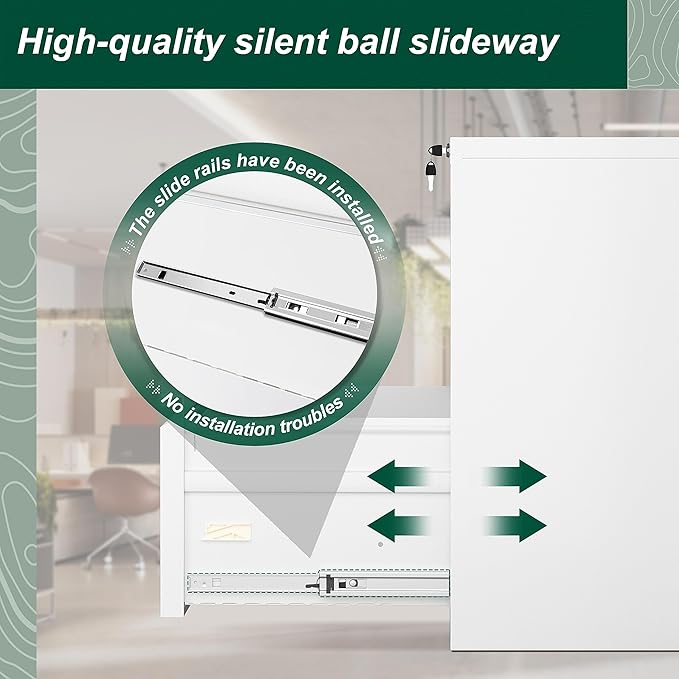 - ✔Lockable Lateral File Cabinet -- Our locking lateral filing cabinet with lock keys and features a interlock system that secures all drawers at once and keeps your important documents safe and secure while you are away from your workspace. With all drawers interlocking mechanism design, it will prevent tipping.