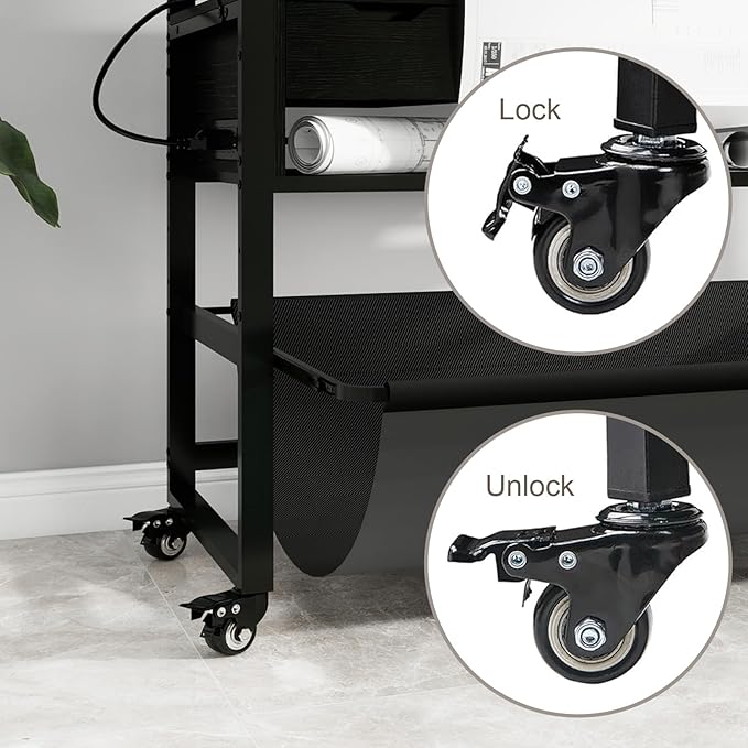 - 【Industrial-Grade Lockable Wheels】Equipped with 4 industrial 360° smooth-rolling lockable casters, This commercial wide format printer stand allows effortless repositioning of fully-loaded equipment, while maintaining stability during printing jobs.