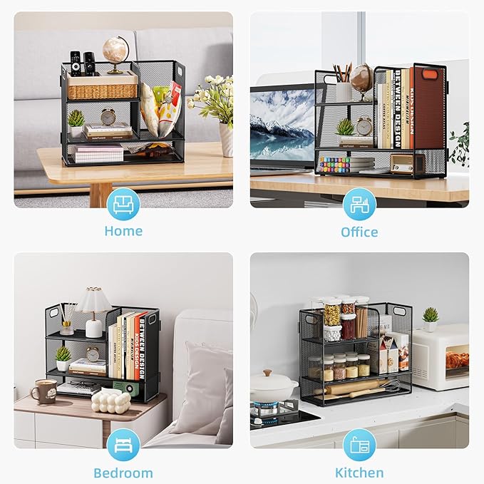 - 【Suitable for Various Occasions】: This desk bookshelf organizer is suitable for a variety of occasions,not only be used in offices, schools and homes, but also can organize cosmetics and all kinds of spices, more beautiful in the office and home.