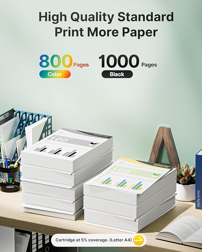 - 𝐇𝐢𝐠𝐡 𝐏𝐚𝐠𝐞 𝐘𝐢𝐞𝐥𝐝: Up to 1000 pages for each 923XL black ink cartridges and 800 pages each 923XL color ink cartridge(5% coverage of A4)