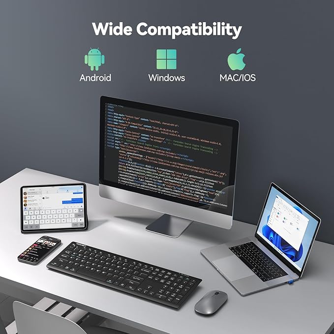 - 【Broad Compatibility】TECKNET slim wireless keyboard compatible with Windows, iOS, macOS, and Android, this wireless bluetooth keyboard is perfect for a wide range of devices including iPads, tablets, smartphones, laptops, desktops, and smart TVs. For devices without Bluetooth, simply use the included USB receiver for a stable connection.