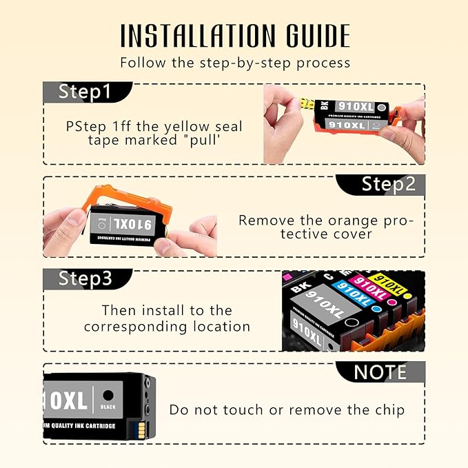 - Latest chip version:Replacement for hp 910xl ink cartridges combo pack equipped with the latest chip version to ensure full working compatibility with your printer