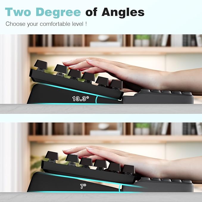 - Works with most keyboards and features two angle settings - adjust the tilt to match how you type for all-day comfort.