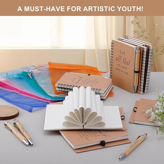 - COMPLETE GIFT-READY SET: This 12-pack set includes beautifully designed spiral notebooks, each paired with a bible verse pen and an elegant organza drawstring bag—making it easy to gift without any extra wrapping. Whether you're sharing encouragement with friends or preparing for a group event, these prayer journals are a thoughtful choice for anyone looking for Christian gifts bulk options that are both practical and meaningful.