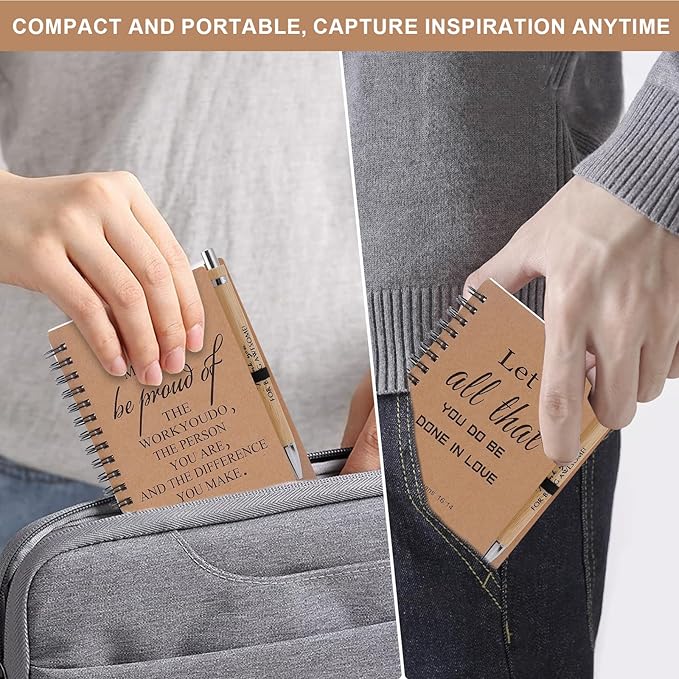 - COMPACT AND PERFECT FOR EVERYDAY USE: Each Christian notebook measures approximately 5.4" x 4.3", making it the ideal size for tucking into a purse, backpack, or Bible cover. With 50 lined pages and a sturdy spiral binding, these notebooks are perfect for jotting down quick prayers, reflections, or church notes on the go. Whether used as a bible study notebook or a personal church notes journal, it brings faith into everyday moments.