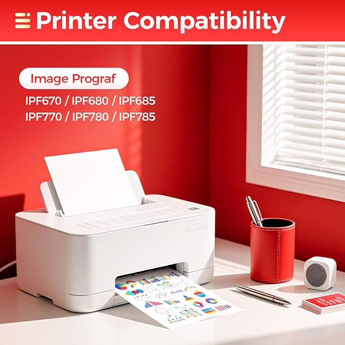 - Compatible Devices : Compatible with Canon imagePROGRAF iPF670 iPF680 iPF685 iPF770 iPF780 iPF785 Inkjet Printer.