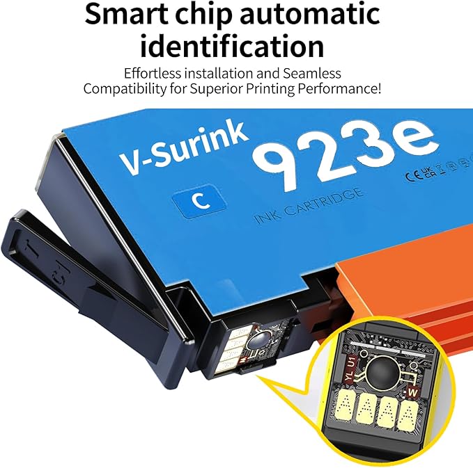 - Safe and Reliable Compatibility:Rigorously tested to eliminate security risks. Our HP 923/923XL compatible cartridges use non-reprogrammable chips, ensuring 100% recognition by HP OfficeJet Pro 8130E/8135E series with zero "cartridge error" alerts