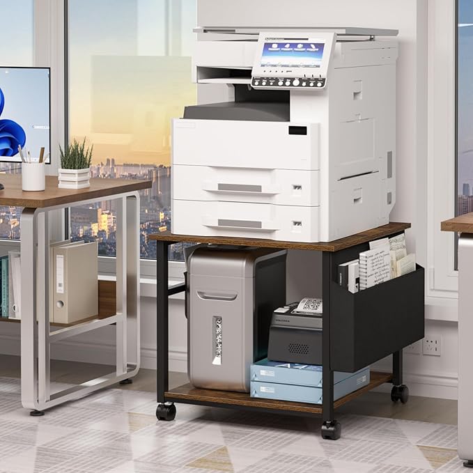 - Super Large Storage Space: The desktop of this large printer stand adopts a 23.6" square design, with each layer having a load-bearing capacity of up to 150 pounds, easily accommodating various large printers and bulky equipment.The two-tier storage design and side storage bag (which can be freely installed on either side) provide ample space for your printer paper and various office supplies, keeping everything neat and organized.