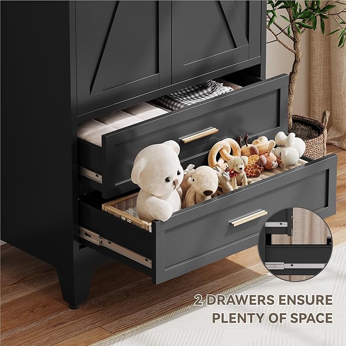 - Farmhouse-Style Aesthetic: The door panel of the metal wardrobe closet is designed with a charming farmhouse aesthetic, adding a touch of rustic elegance to your space. Closet organizers and storage classic design complements a variety of decor styles, making it a versatile choice for any room