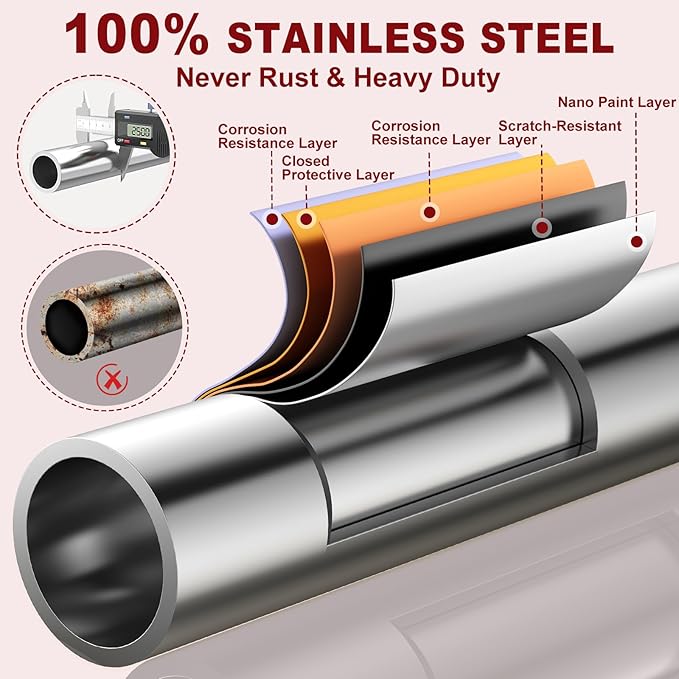 - 100% STAINLESS STEEL & 860 LBS CAPACITY & RUST-FREE! Tired of flimsy clothes racks that snap, wobble and rust? Upgrade to our heavy duty clothing rack! Made from 100% stainless steel, this rolling clothes rack holds up to 860 lbs — far surpassing other garment racks! Hang 500+ bulky garments or stacks of laundry with ease! Rust-resistant closet rack stays like new in humid basements or hot outdoor spaces. No rust, no flakes—just lasting durability. Get yours now and feel the difference!
