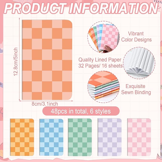 - Rich in quantity: You’ll get 48 small pocket hippie groovy notebooks in 6 vibrant colors, with 8 of each color. The wide range of colors makes them ideal for a variety of uses. Ideal for daily use or sharing with classmates and colleagues, this mini hippie checkered notebook set is both practical and fun.