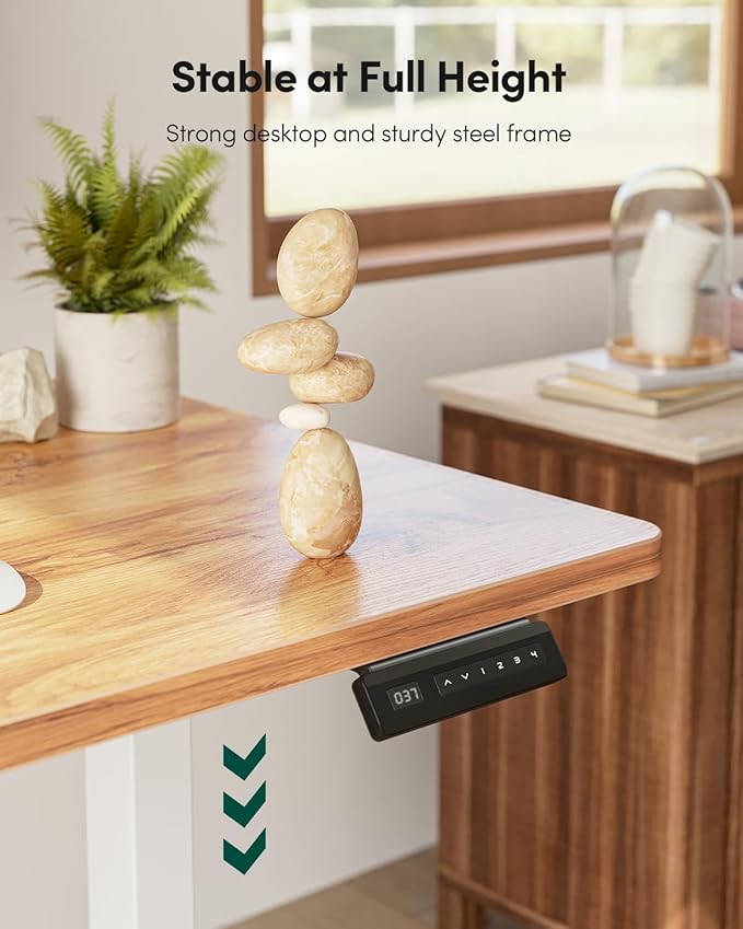 - 4 Memory Height Presets: The Fezibo Electric Standing desk features an intuitive LED controller for quiet operation. It allows you to save up to 4 custom height settings to seamlessly switch between your preferred heights, ensuring you have a focused, distraction-free workspace.