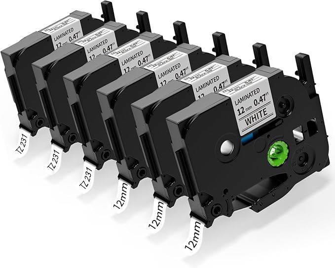 - Aonomi Compatible with P Touch Label Maker Tape Information: 6-Pack Tze Tz Tape 12mm 0.47 Laminated White Replacement for Brother Label Maker Tape TZe231 TZ231 TZ231s TZ-231 TZc-231 TZe AZe Tz tape, Color: Black Ink on White Tape, Width: 0.47 Inch (12mm), Length: 26.2 Feet (8m)