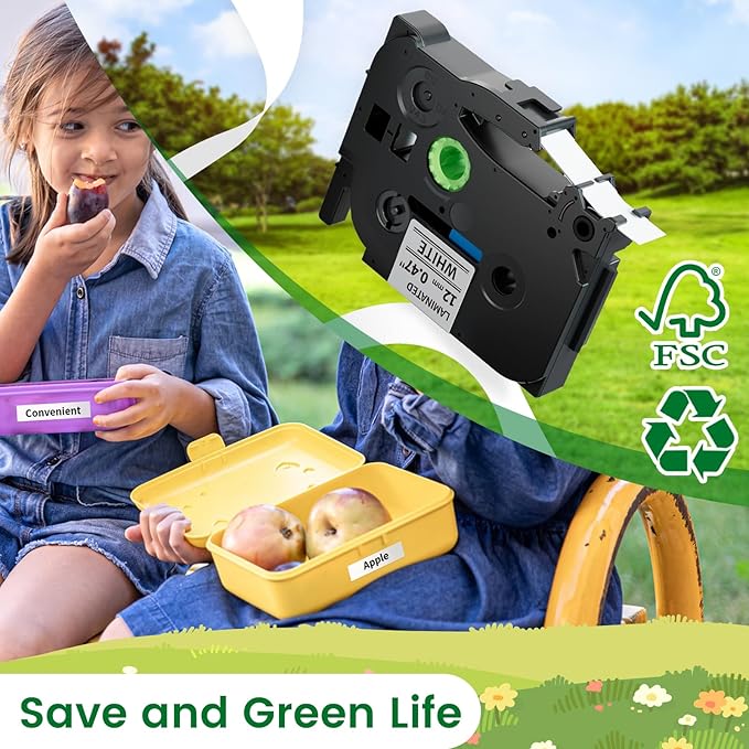 - Labeling Tze Tz tape 12mm 0.47 laminated white label tape more stress less: Label tapeCompatible for Brother label maker tape is great for labeling files, folders, school children name labels, shelves, books, USB sticks,bottle, cabinets, food containers, Personal Items, accessories Item Differentiation, Plant markers, reminder notes, Date Labels, Price tag,and more.Quickly helps you find what you need and also keeps your space tidy