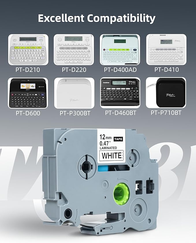 - Good compatibility: suitable for brother p-touch label tape that use label tapes,like PT-D210, PT-D220, PT-D202, PT-D200, PT-H110, PT-D410, PT-D400, PT-D400AD, PT-D410BT, PT-D600, PT-D610BT, PT-P710BT, PT-P700, PT-1890W, PT-P910BT, PT-H100, PT-D400VP, PT-D450, PT-D600VP, PT-P750W, PT-1230PC, PT-1280, PT-1290, PT-1880, PT-P300BT etc.