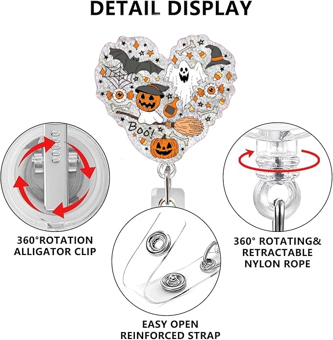 - Durable Acrylic Material: Made from high-quality acrylic, this Halloween badge reels retractable is built to last, ensuring daily use without compromising on style or functionality