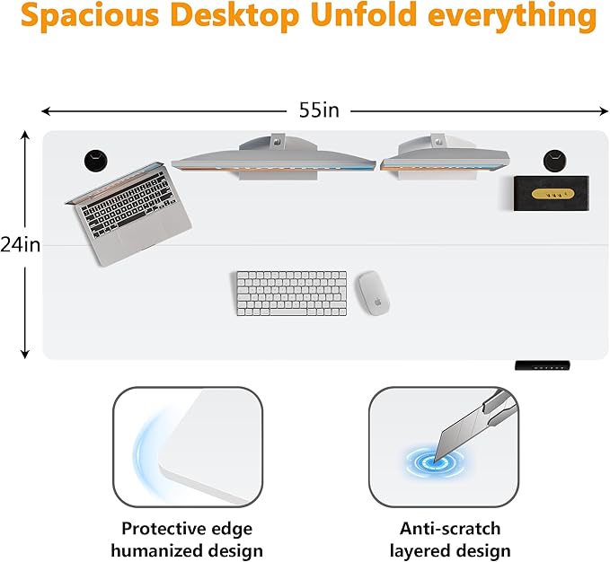 - 【Extra Large Workstation】– Boost productivity with our 55" L x 24" W desktop, providing ample space for monitors, keyboards, and office essentials. Designed for professionals and gamers, this clutter-free desk ensures a smooth workflow for work, design, or gaming. Enjoy functionality and freedom in one versatile workspace