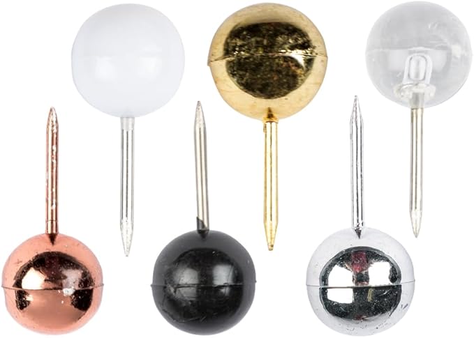 - Plastic Head Thumb Tacks | Colors: Gold, Rose Gold, Silver, Black, White, Silver